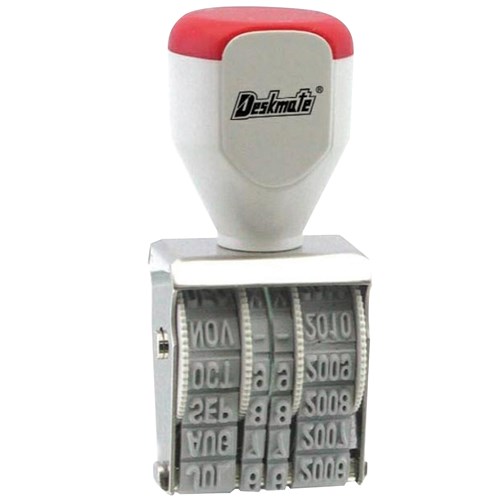 Date stamp with 4 bands. 12 year band. Durable steel frame. Ideal for daily use at home or the office. Designed for use with Deskmate stamp pads.