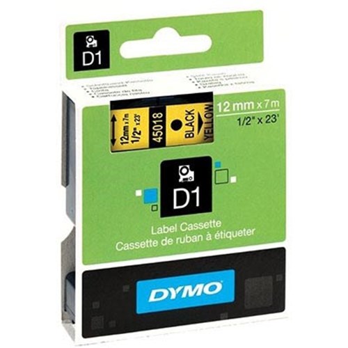 DYMO D1 LABEL CASSETTE TAPE 12MMX7M BLACK ON YELLOW