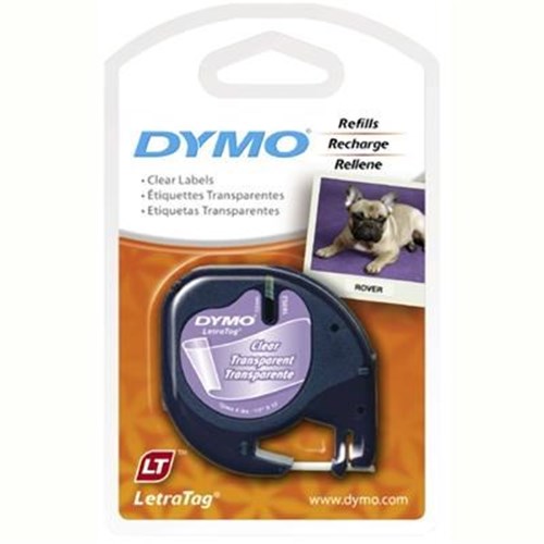 Suits Dymo® Letratag® LT100H labelling machine. Can be used on clean, flat surfaces including plastic, paper, metal, wood and glass. Allows for printing of black text on clear. Has an easy-peel backing for trouble-free application. Can be safely removed without leaving sticky residue. Easy to load.