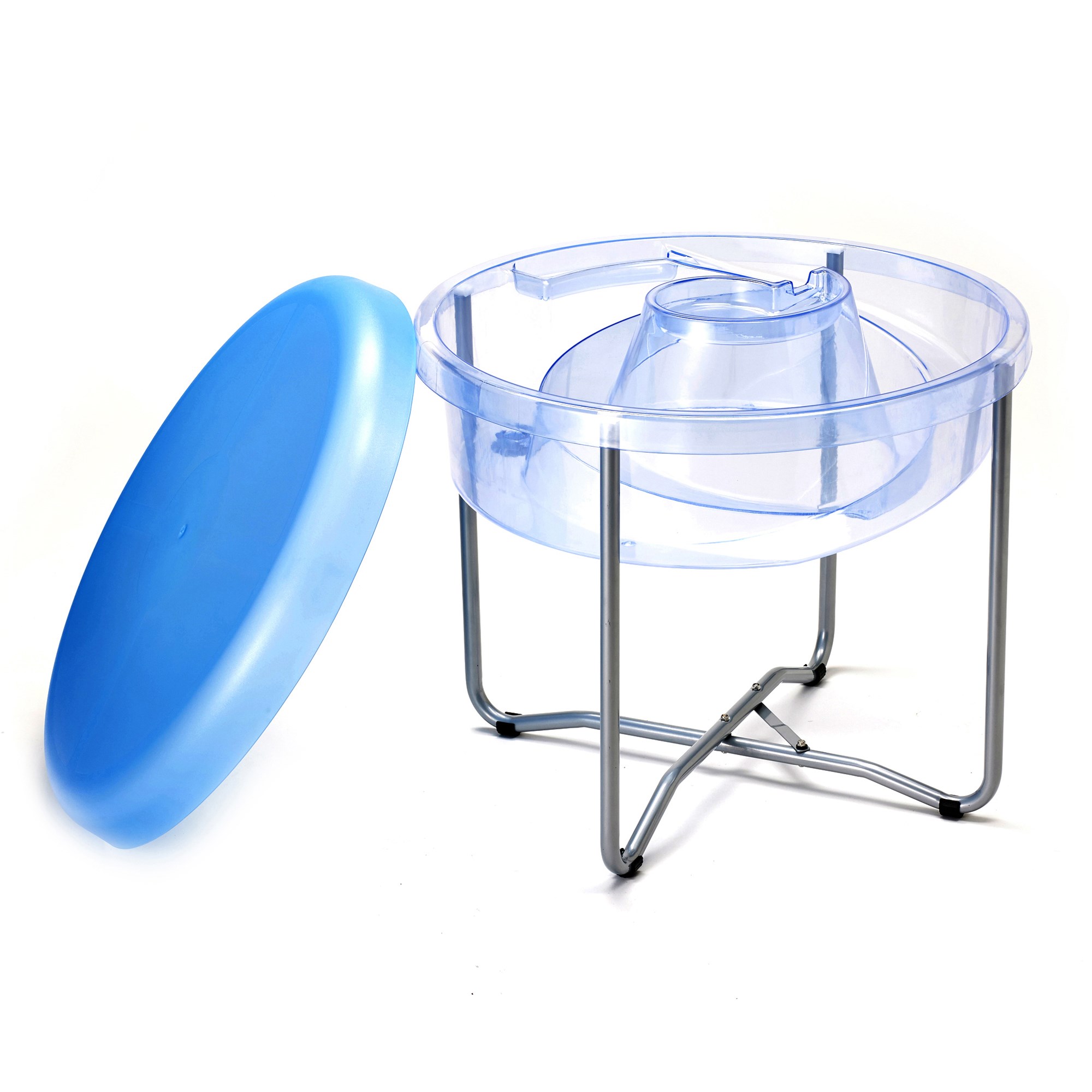 Circular sand and water tray designed with multiple interior levels and slopes to allow children to explore many different activities. Constructed of strong durable plastic, with a heavy duty steel tubular frame. Comes with a plastic moulded lid. Dimensions 750mm diameter, height 580mm.