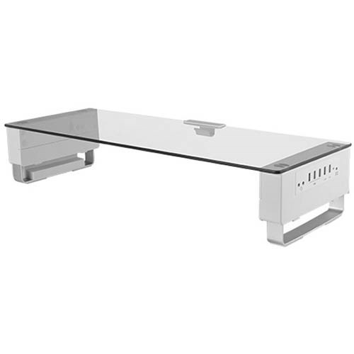 ERGOVIDA GLASS TOP MONITOR RISER WITH USB AND AV PORTS HEIGHT ADJUSTABLE ALLOY BASE