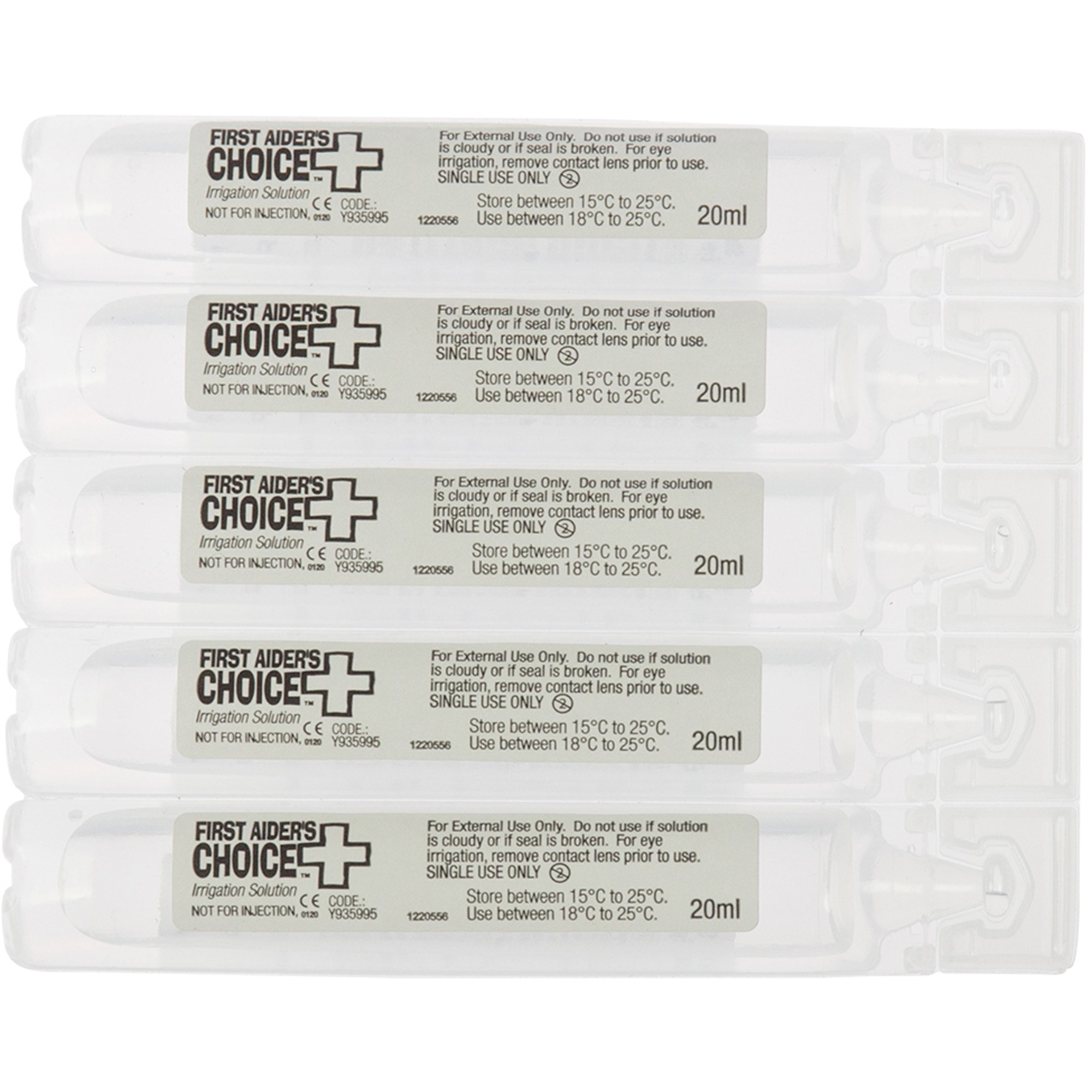 0.9% sodium chloride solution. Ideal for eye wash and irrigation. Sterile when container intact. Easy tear open top for quick application. Each pod is designed for single use which ensures it hygienically clean. The pack contains 5 individual 20 mL pods of irrigation solution. Health Warning: Always read the label and follow the directions for use. For irrigating the eyes to relieve irritation and to assist in removing loose foreign bodies and for superficial wound irrigation.