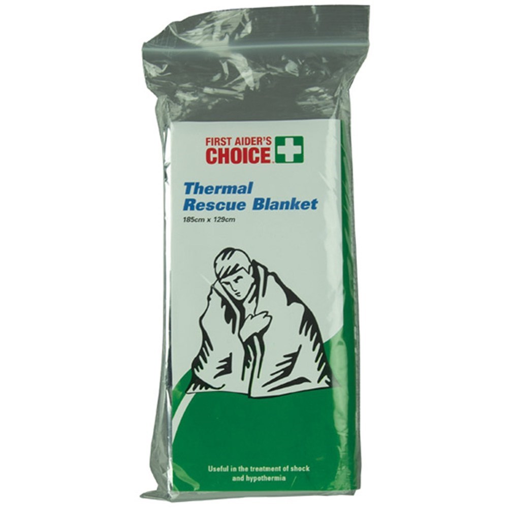 FIRST AIDER'S CHOICE THERMAL RESCUE BLANKET 129W X 185CML SILVER