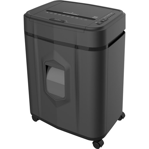Cross Cut 4 x 12mm. 130 sheets automatically. 10 sheets manually. Slide out 19 litre bin. Auto start stop with reverse. 60 minutes Auto 20 minutes manual run time. Lower 55dBA noise level. Shreds staples pins and credit cards. 2 Year Manufacturer Warranty for Machine. 10 Year Manufacturer Warranty for Cutters.
