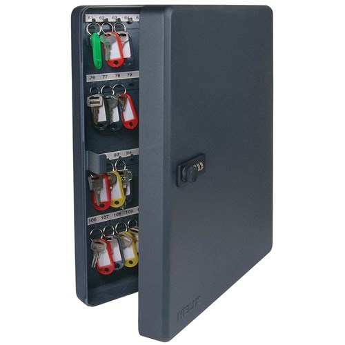 Helix Key cabinets are specifically designed to make key management much easier. Secure cabinet providing storage for 100 keys. Durable steel construction with a smart black powder coated finish. Metal key hooks accommodate most keys. Supplied with wall hanging kit, hook number and the required number of key fobs.