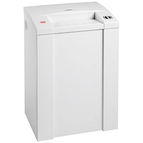 Strip Cut 3.8mm. 23 sheets at a pass. Shreds 622 sheets per minute. Slide out 130 litre waste bin. Auto start stop and reverse. Accepts paper clips staple and pins. LED display standby, bin full, paper jam, overheat. 2 Year Manufacturer's Warranty For Machine. 30 Year Manufacturer Warranty for Cutters.