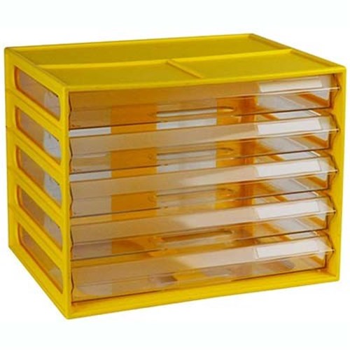5 drawer space saving landscape design. Convenient finger holes for easy removal of paper & documents. Stackable to create a modular filing system. 100% Australian made. L255xW330xH230mm. GECA (Good Environmental Choice Australia) certified.