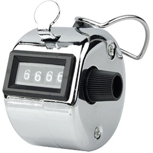 Chrome plated metal construction Large capacity - up to 9999 clicks Resets to zero by turning knob Ideal use for surveys, warehouses, etc.