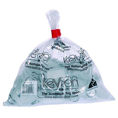 Kevron key tags are the market leading plastic tags. Australian made. Durable and easy opening clicktags with pre-cut paper insert. Made from transparent plastic for clear reading of label. Ring size: 19mm. Tag size: 56 x 30mm. Insert size: 37 x 21mm. Available in other colours.