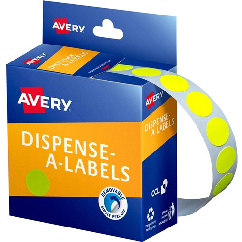 AVERY REMOVABLE DISPENSER LABELS 14MM ROUND FLUORO YELLOW PACK OF 700