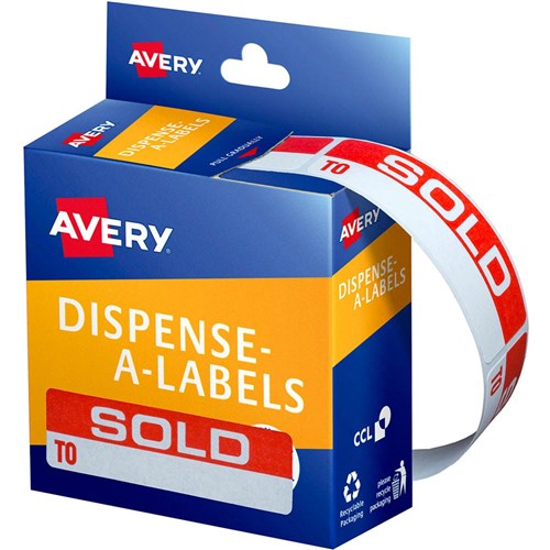AVERY REMOVABLE DISPENSER LABELS 19X64MM SOLD TO WHITE ON RED PACK OF 125