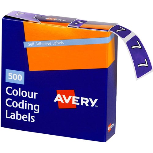 AVERY NUMERIC CODING LABEL 7 SIDE TAB 25X38MM PURPLE BOX OF 500