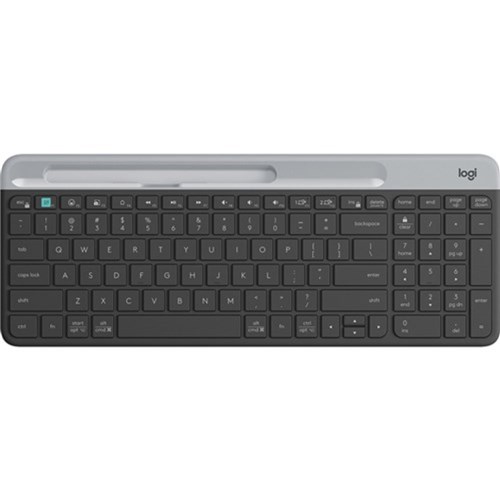 The K580 Slim Multi-Device - an ultra-thin and design-forward keyboard perfect for typing your ideas on your computer and switching to writing a text on your smartphone. Easy Switch buttons let you switch typing between two devices with the same keyboard. Choose to connect via Bluetooth wireless technology and/or the 2.4 GHz USB. Dimensions: 143.9H x 373.5W x 21.3mmD. Weight: 558g . 10 metres wireless range. 1 Year Manufacturer's Warranty.
