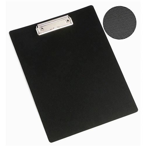 This tough and durable clipboard resists wear and tear. The heavy duty textured material is moisture resistant and won't crack or split. Made from 100% recycled polypropylene. Textured material on back of clipboard. Features a sturdy wire metal clip to hold documents secure.