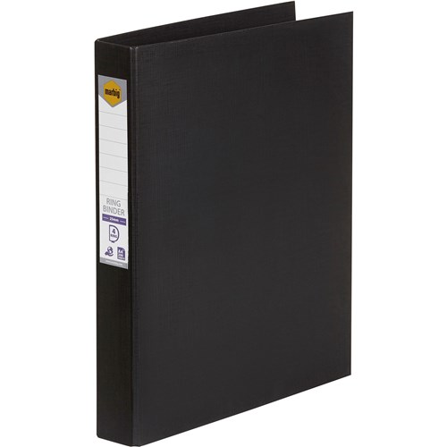 MARBIG LINEN PE BINDER A4 4D RING 25MM BLACK