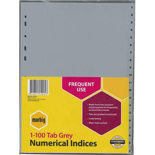 MARBIG PLASTIC INDICES & DIVIDERS A4 1-100 GREY