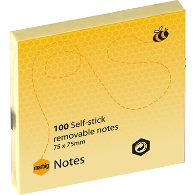 MARBIG REPOSITIONABLE NOTES 75 X 75MM YELLOW 100 SHEET PAD PACK OF 12