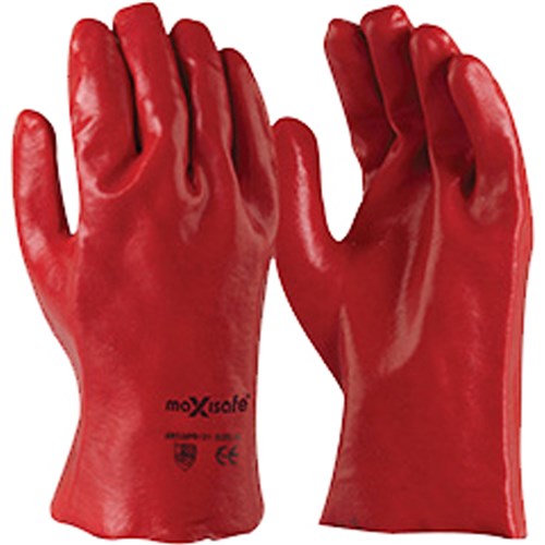 MAXISAFE GAUNTLET SINGLE DIPPED GLOVES 27CM RED