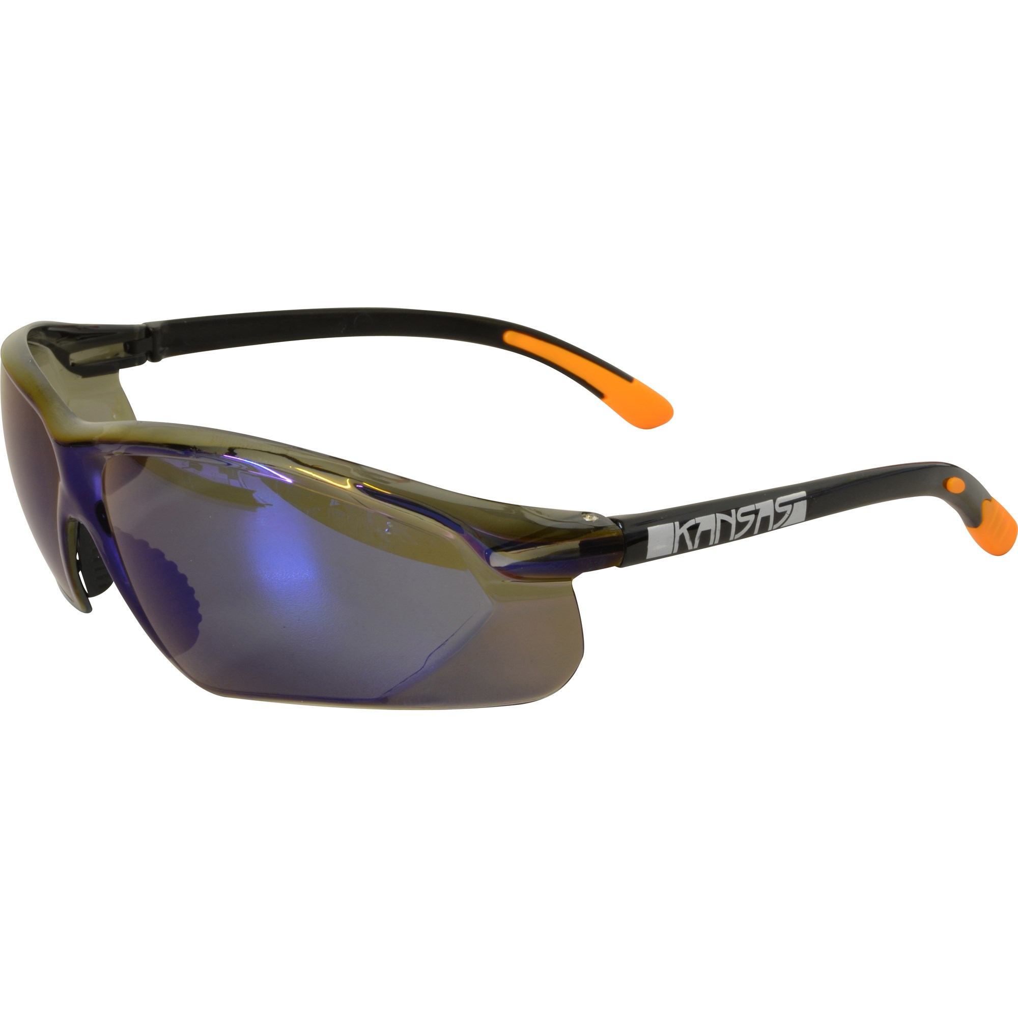 MAXISAFE KANSAS SAFETY GLASSES WITH ANTI FOG BLUE MIRROR LENS BLACK FRAME