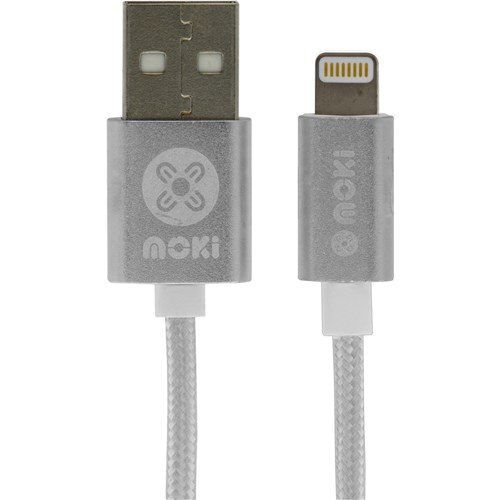MOKI KING SIZE USB TO LIGHTNING SYNCHARGE CABLE 3 METRE BRAIDED SILVER