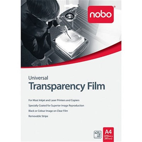 NOBO UNIVERSAL TRANSPARENCY FILM A4 INKJET AND LASER PACK OF 25