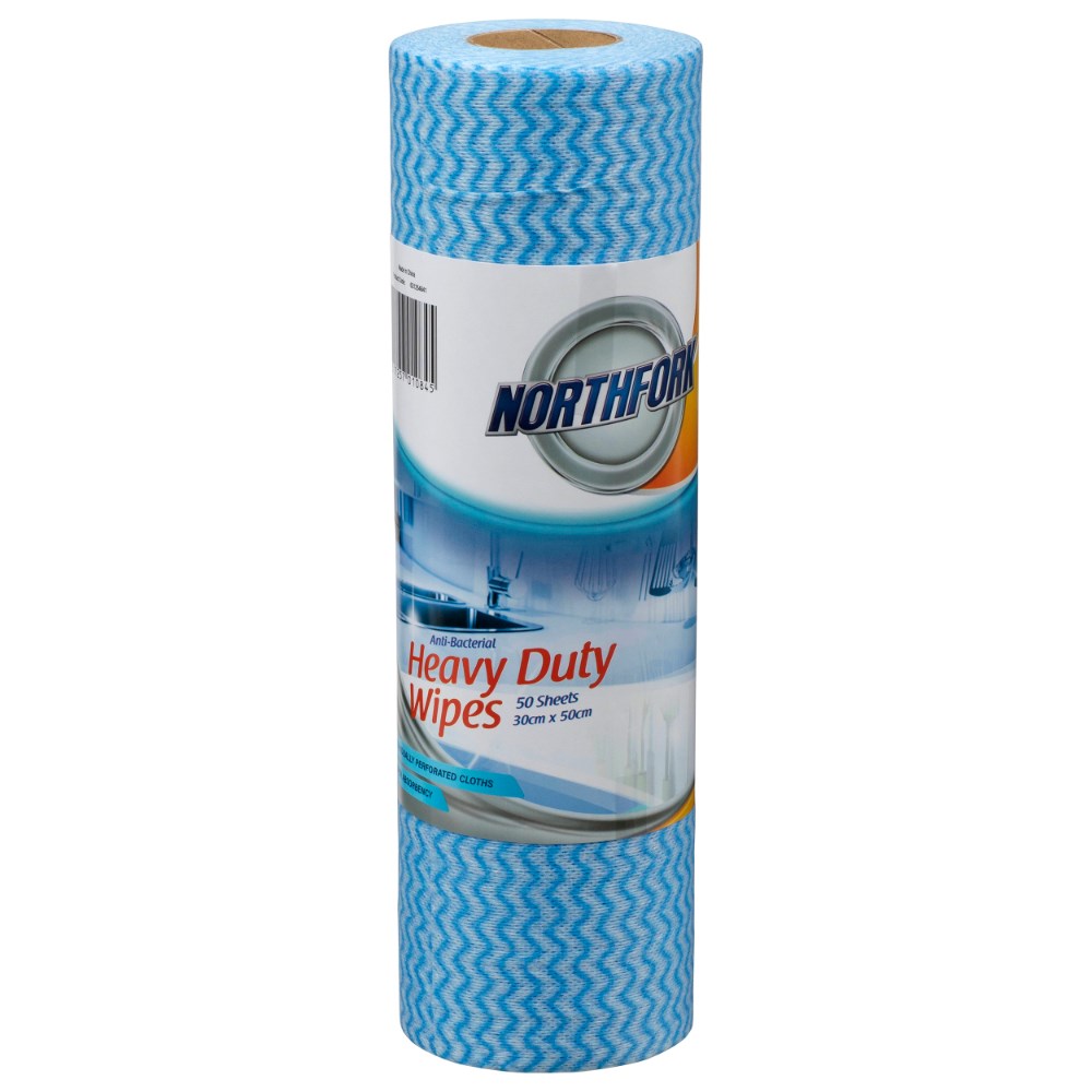 NORTHFORK ANTIBACTERIAL HEAVY DUTY WIPES ROLL 50 SHEETS BLUE