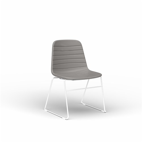 OLG SOFIA VISITOR CHAIR WHITE SLED BASE LIGHT GREY PU LEATHER SEAT
