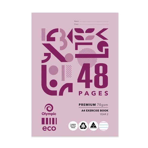 OLYMPIC ECO EY24P EXERCISE BOOK QLD YEAR 2 A4 18MM RULED 48 PAGE