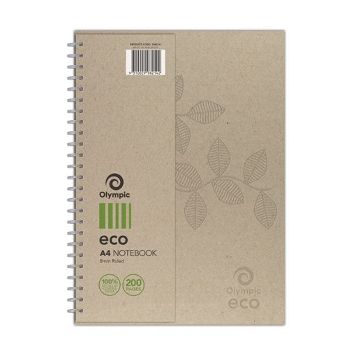 OLYMPIC ECO WIRO NOTEBOOK A4 RULED 8MM SPIRAL SIDE BOUND 200 PAGE