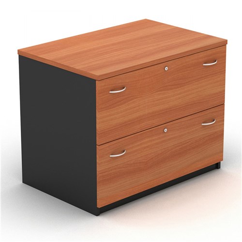 OM LATERAL FILING CABINET 2 DRAWER 900W X 600D X 720MMH CHERRY AND CHARCOAL
