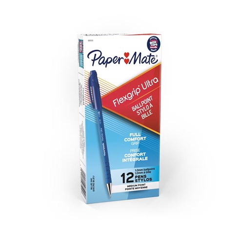 PAPERMATE FLEXGRIP ULTRA BALLPOINT PENS MEDIUM 1.0MM BLUE BOX OF 12