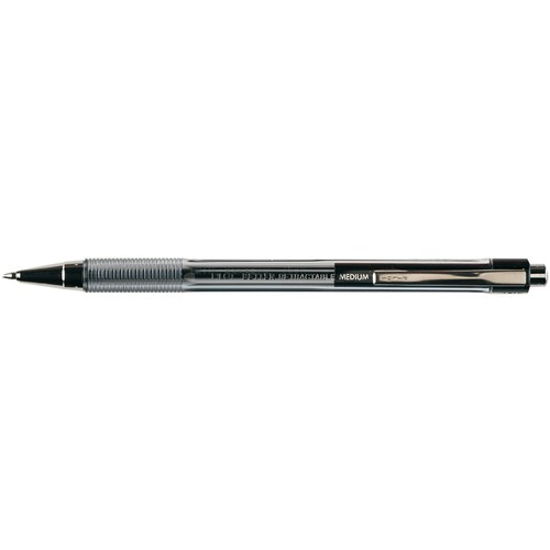 Convenient retractable model. Tungsten carbide ball for extra smooth writing. Ribbed barrel for a more comfortable grip. Refillable. Available in boxes of 12.