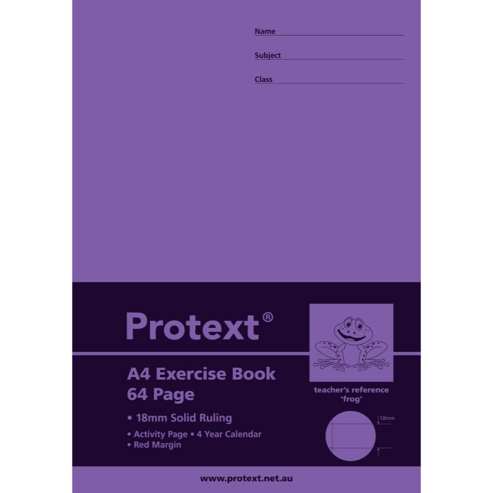 PROTEXT EXERCISE BOOK A4 64 PAGE 18MM SOLID RULED WITH MARGIN FROG