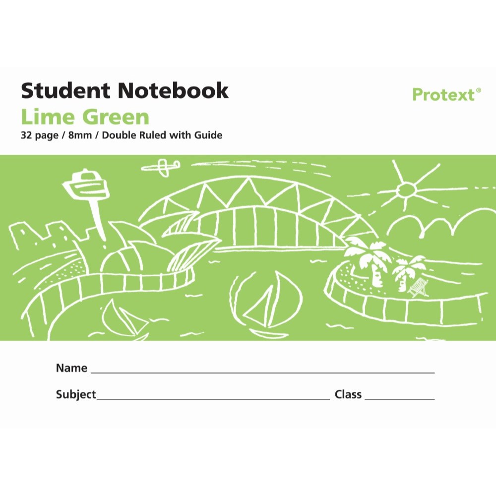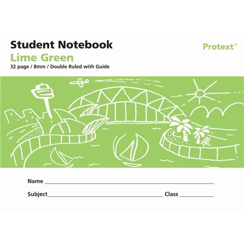 PROTEXT STUDENT NOTE BOOK 240 X 175MM DOUBLE RULED 8MM/GUIDE 32 PAGE LIME GREEN