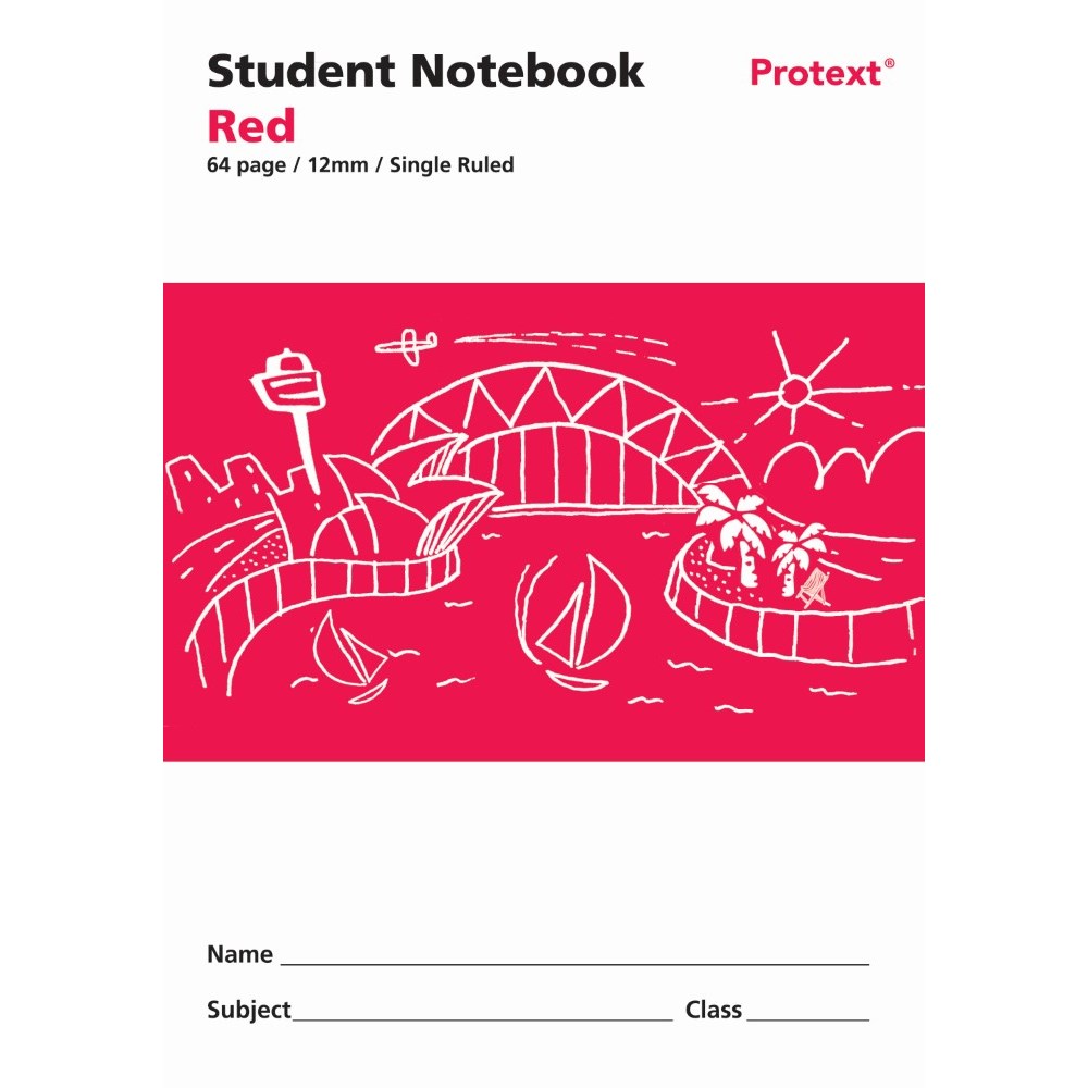 PROTEXT STUDENT NOTE BOOK 250 X 175MM SINGLE RULED 12MM 64 PAGE RED
