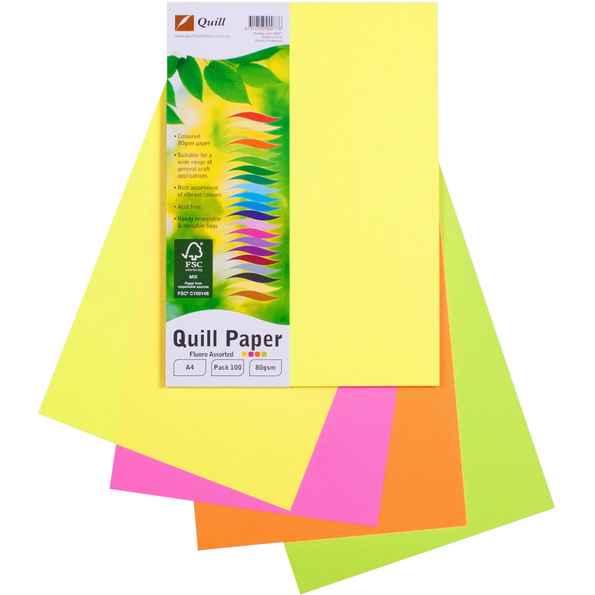 QUILL COLOUR COPY PAPER A4 80GSM FLUORO ASSORTED PACK OF 100