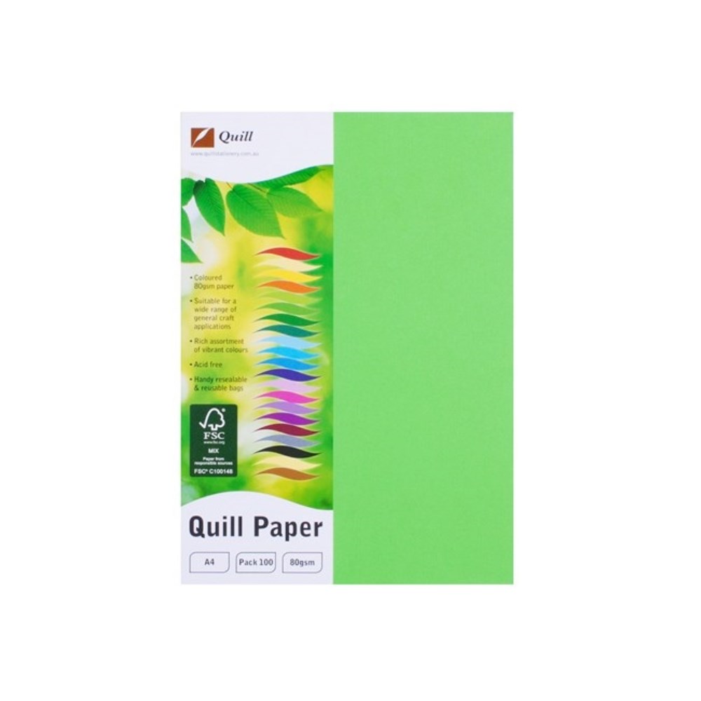 QUILL COLOUR COPY PAPER A4 80GSM LIME PACK OF 100