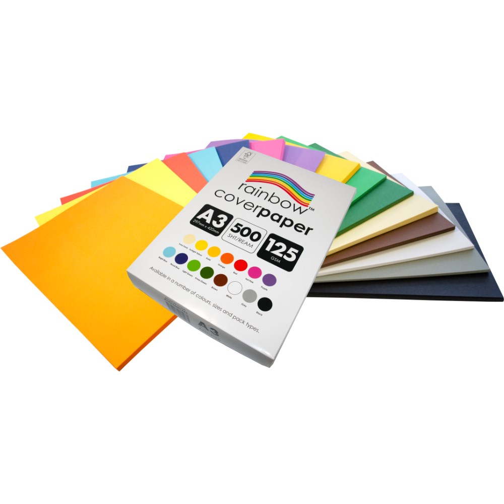 RAINBOW COVER PAPER A3 125GSM ASSORTED 500 SHEETS