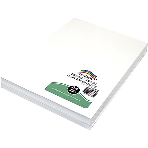 Rainbow Gloss paper is available in A3 and A4 sizes and an array of weights. Suitable for high speed and laser printers. FSC Certified. Acid Free. Also available in box of 4 packs.