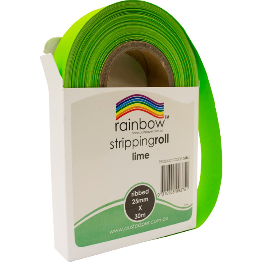 RAINBOW STRIPPING ROLL RIBBED 25MM X 30M LIME