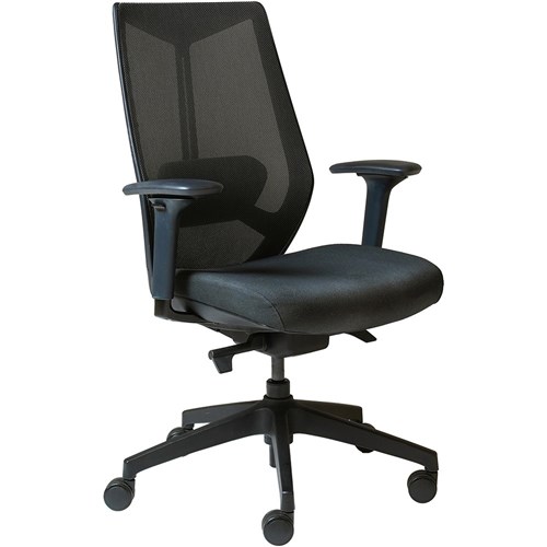 RAPIDLINE ARCO ERGONOMIC CHAIR HIGH MESH BACK WITH ARMS FABRIC SEAT AND BACK BLACK