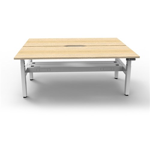 The entire Boost+ range has now been performance tested and is compliant to the AFRDI standards for general safety, strength, durability and stability in all sizes and configurations based on AS/NZS 4442:201. Unit Dimension: 1500mm W x 1500mm D x 1330mm H (Overall). Per User: 1500mm W x 750mm D. Desk Height: 620-1270mm H. Smooth and quiet adjustment at 38mm per second. Min Digital control panel with 3 pre-set positions, LED display panel, keypad safety lock and reminder alarm setting. Natural Oak coloured worksurface with 750mm depth top. 50mm D scallop cut out to rear. Back to Back Workstation with Cable Tray. Dual Motor 3 stage motorised legs. 140kg weight loading capacity. 10 Year Manufacturer's Warranty. Delivery, installation and assembly charges may apply to furniture. Please enquire to confirm.