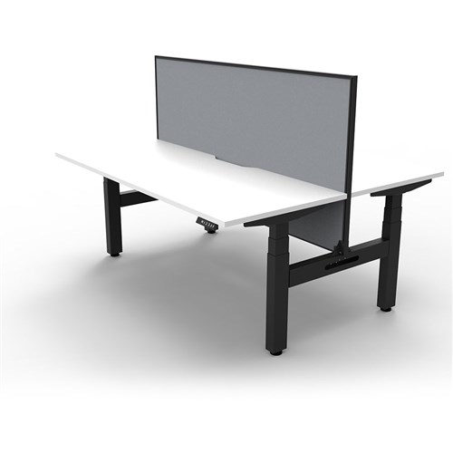The entire Boost+ range has now been performance tested and is compliant to the AFRDI standards for general safety, strength, durability and stability in all sizes and configurations based on AS/NZS 4442:201. Unit Dimension: 1800mm W x 1500mm D x 1330mm H (Overall). Per User: 1800mm W x 750mm D. Desk Height: 620-1270mm H. Includes pinnable privacy screen in grey fabric with matching black powder coated frame. 900mm H x 30mm T. Smooth and quiet adjustment at 38mm per second. Min Digital control panel with 3 pre-set positions, LED display panel, keypad safety lock and reminder alarm setting. Natural White coloured worksurface with 750mm depth top. 50mm D scallop cut out to rear. Back to Back Workstation with Screen. Dual motor 3 stage motorised legs. 140kg weight loading capacity. 10 Year Manufacturer's Warranty. Delivery, installation and assembly charges may apply to furniture. Please enquire to confirm.
