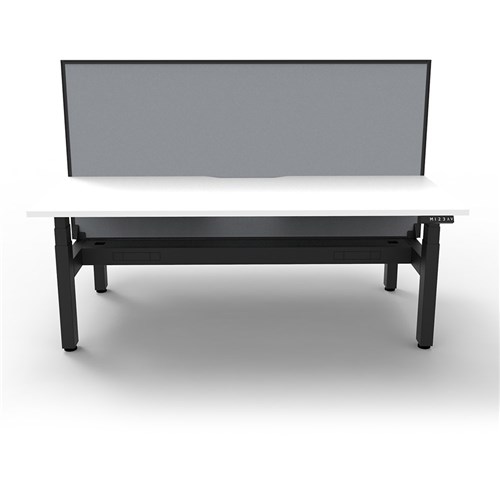 The entire Boost+ range has now been performance tested and is compliant to the AFRDI standards for general safety, strength, durability and stability in all sizes and configurations based on AS/NZS 4442:201. Unit Dimension: 1500mm W x 1500mm D x 1330mm H (Overall). Per User: 1500mm W x 750mm D. Desk Height: 620-1270mm H. Includes pinnable privacy screen in grey fabric with matching black powder coated frame. 900mm H x 30mm T. Smooth and quiet adjustment at 38mm per second. Min Digital control panel with 3 pre-set positions, LED display panel, keypad safety lock and reminder alarm setting. Natural White coloured worksurface with 750mm depth top. 50mm D scallop cut out to rear. Back to Back Workstation with Screen and Cable Tray. Dual motor 3 stage motorised legs. 140kg weight loading capacity. 10 Year Manufacturer's Warranty. Delivery, installation and assembly charges may apply to furniture. Please enquire to confirm.
