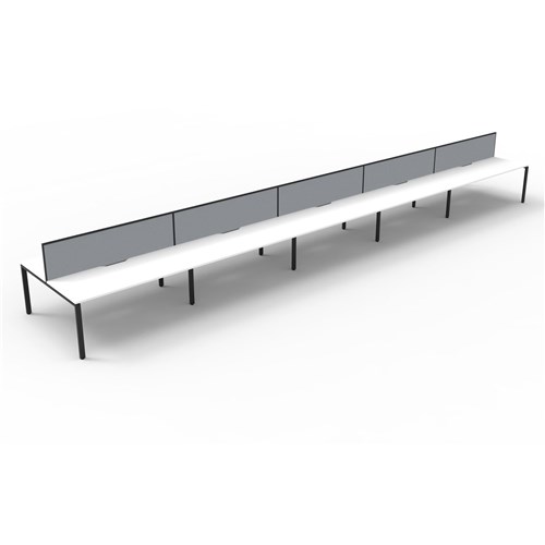 Maximise space and create an efficient working environment with Deluxe Rapid Infinity. Configure multiple workstations together to create pods of desks. Overall: 7500mm W x 1530mm D x 1200mm H. Per User: 1500mm W x 750mm D. Desk Height: 730mm. 495mm H x 30mm T pinnable privacy screen upholstered in grey fabric with matching black powder coat extrusion. Natural White worksurface with 410mm W x 50mm D scallop cable access. 60mm x 30mm Profile Leg adds a minimalist look to each workstation. Scalloped top for easy wire management. Double support rail for extra strength. E0 Enviroboard. 5 Year Manufacturer's Warranty. Delivery, installation and assembly charges may apply to furniture. Please enquire to confirm.