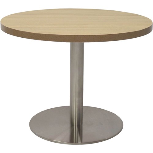 RAPIDLINE ESTILLO DISC BASE ROUND COFFEE TABLE 600D X 450MMH OAK SILVER BASE