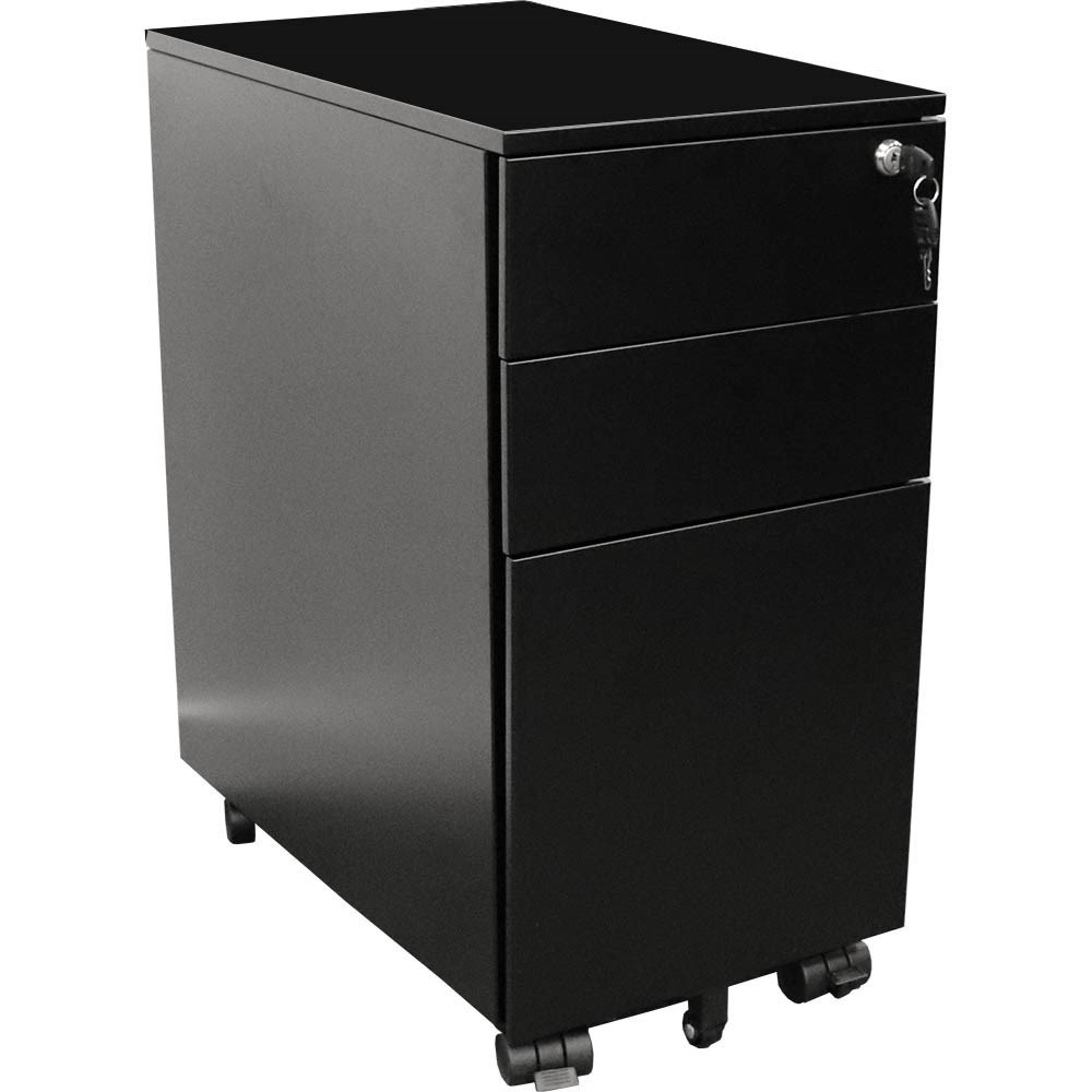 RAPIDLINE GO STEEL SLIMLINE MOBILE PEDESTAL 2 DRAWER 1 FILE 300WX475DX610MMH BLACK