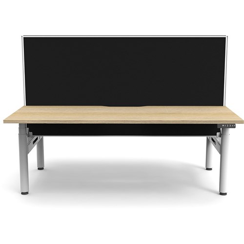 Natural Oak top with White frame. Unit Dimension: 1800mm W x 1500mm D x 1330mm H. 620-1270mm height range for desk, 750mm depth per user. E0 rated top. Powdercoat base. Digital control panel with 3 pre-set positions, LED display panel, keypad safety lock & reminder alarm setting. Anti-collision technology, noise emission of less than 50DB. Lifting capacity of 120kg with a max speed of 38mm per second. 70mm diameter round column legs. 700mm wide foot size with adjustable leveling feet, return foot: 700mm. Comes with 30mm thick privacy screen. 10 Year Manufacturer's Warranty. Delivery, installation and assembly charges may apply to furniture. Please enquire to confirm.