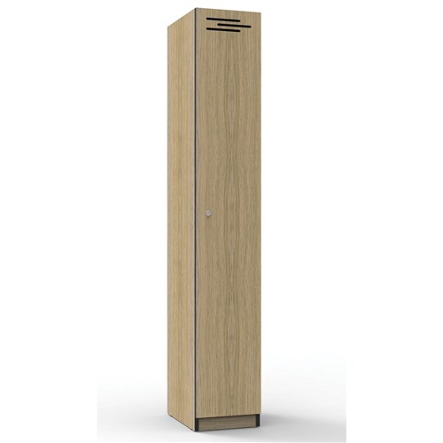 RAPIDLINE INFINITY MELAMINE 1 DOOR LOCKER 305WX455DX1850MMH OAK WITH BLACK EDGING