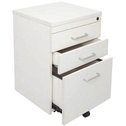 2 standard drawers and 1 file drawer. Lockable with metal runners. 5th wheel for stability and ease of opening. E0 enviroboard. 5 Year Manufacturer's Warranty. Delivery, installation and assembly charges may apply to furniture. Please enquire to confirm.